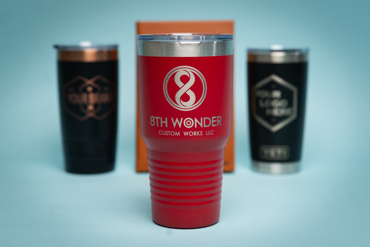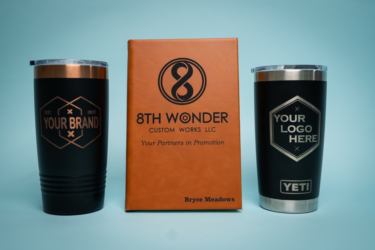 8th Wonder Custom Works LLC is a company that strives to create the highest quality promotional products for small businesses. Using only the most innovative techniques, we produce custom apparel, drinkware, and a wide array of made-to-order branded products. Serving small businesses, groups, and organizations is not our only focus as we also offer custom engraving services such as granite memorials, photo-engravings, and personalized gifts.